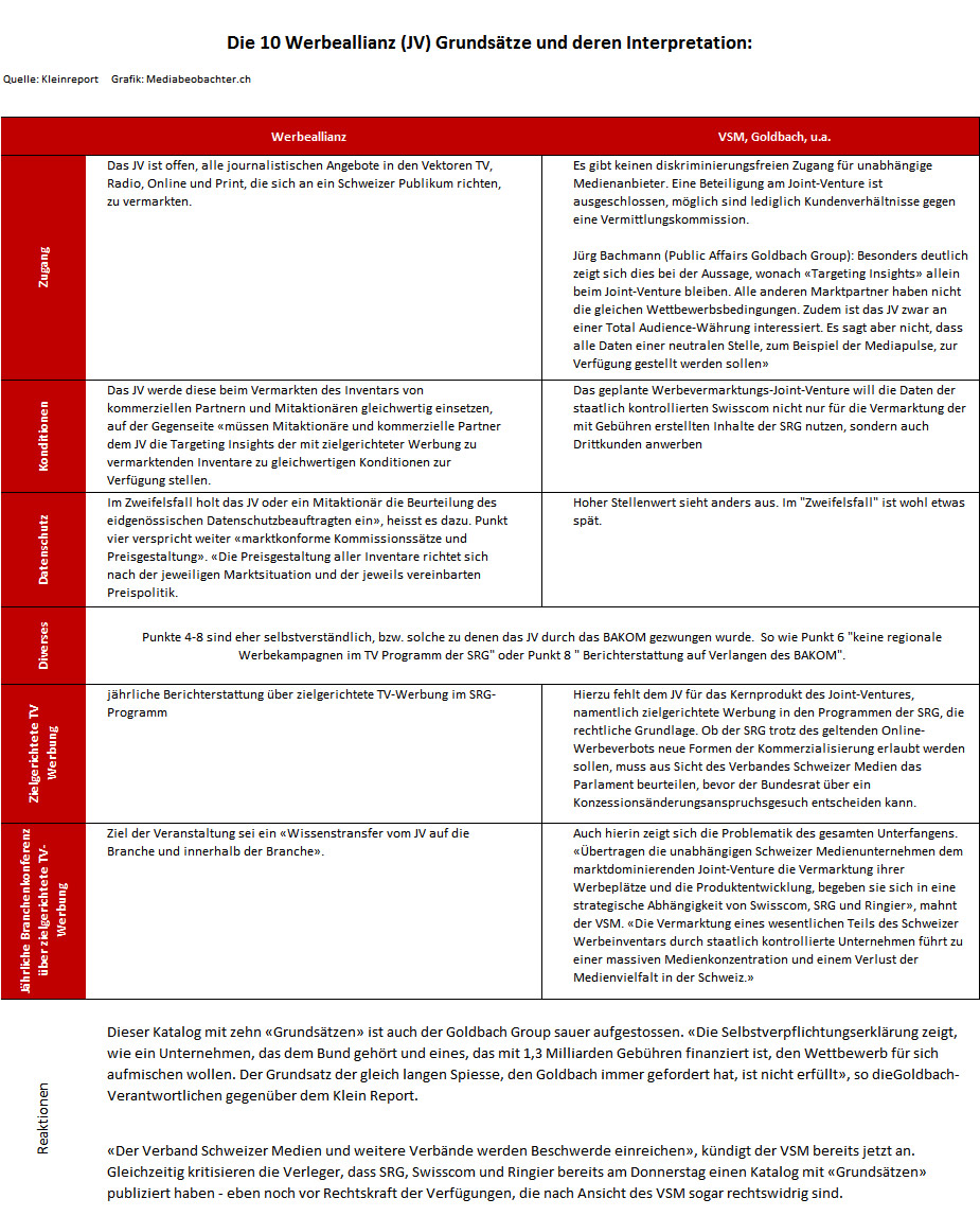 Der VSM legt Beschwerde gegen die Werbeallianz ein - die 10 Joint Venture Grundsätze sind nicht nur dem VSM sauer aufgestossen. Hier ein übersichtliche Zusammenstellung: